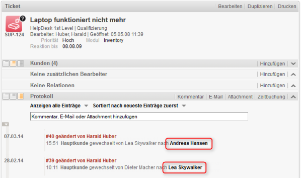 Mit diesem Template wird die Darstellung der Kundendaten im Ticketprotokoll, d. h. dem Protokollbereich eines Tickets definiert.