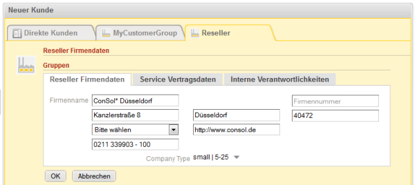 Abbildung 197: ConSol CM Web Client - Firmendaten in Tabs (basierend auf Datenobjektgruppen)
