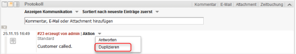 Aktiviert die Option Duplizieren für einen ACIM-Texteintrag (Kommentar oder E-Mail). (boolean)Abbildung 106: ConSol CM Web Client - Option zum Duplizieren eines ACIM-Texteintrags