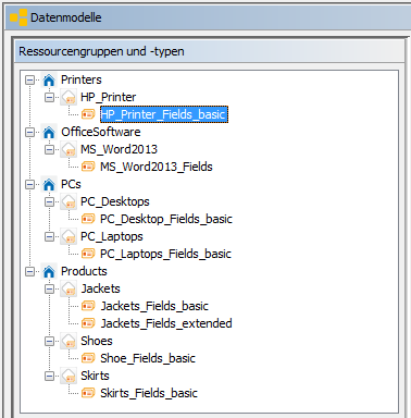 Das vollständige Modell ist in der folgenden Abbildung dargestellt. Anhand der Definition der Drucker und Office-Software zeigen wir Ihnen das Grundprinzip. Danach sollten Sie in der Lage sein, alle verbleibenden Ressourcen selbst zu konfigurieren.