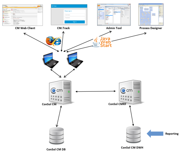 Abbildung 308: ConSol CM - Systemarchitektur mit DWH und CMRF (2 Server)