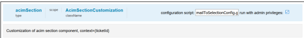 The script has to be stored in the Scripts and Templates section of the Admin Tool (see section Admin Tool Scripts for details) and its name has to be entered in the field configuration script.