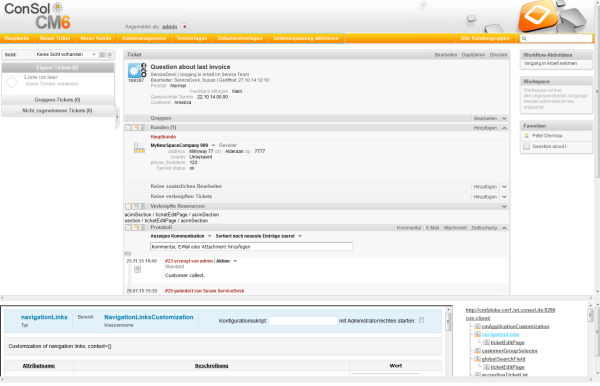 Zusätzlich zum Design der Web-Client-GUI, das bei der Definition der Benutzerdefinierten Felder (siehe Abschnitt Verwaltung von Benutzerdefinierten Feldern (Einrichten des Ticketdatenmodells)), Datenobjektgruppenfelder (siehe Abschnitt Verwaltung von Datenobjektgruppenfeldern und GUI-Design für Kundendaten) und Ressourcenfelder (siehe Abschnitt CM.Resource Pool - Einrichten des Ressourcenmodells) vorgenommen wird, kann ein Administrator in der Seitenanpassung weitere Features und Funktionen des GUI-Layouts konfigurieren. Die Konfiguration erfolgt durch die Zuweisung von Werten zu bestimmten Attributen.