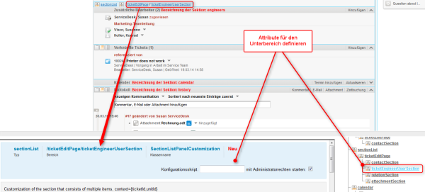 In diesem Beispiel kann der Unterbereich ticketEditPage / contactSection also für zwei unterschiedliche Typen konfiguriert werden: customerSectionPanel und sectionList.