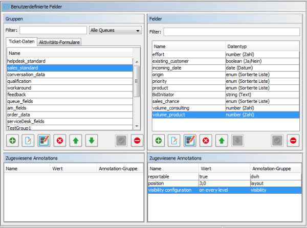 Abbildung 78: Einstellen der Sichtbarkeitskonfiguration für ein bestimmtes Benutzerdefiniertes Feld (Beispiel: volume_product)