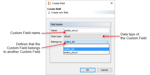 If you want to edit a Custom Field, select it in the list and click the Edit button. The same window as described above for creating a Custom Field will appear. Except for data type, enum type, and enum group you can modify all fields and save your changes by clicking OK.