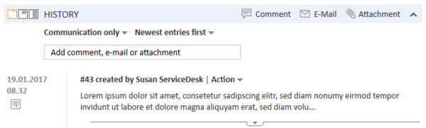 Depending on the visibility configuration of this class of text, the regular comments in the ticket (i.e., the comments which have the class of text default class) will be displayed, see section visibility.
