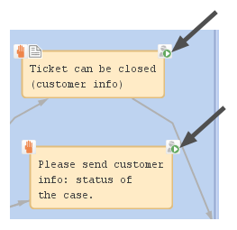 The activity is marked with the blue hand/manual icon in the Process Designer GUI. The activity is available like a workflow activity in the Web Client and is performed when the engineer has clicked on this activity. The scope activity is available as long as the ticket is located within the scope where the activity is placed or in one of the subordinate scopes.