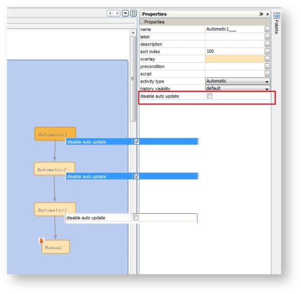 Figure 158: ConSol CM Process Designer - Activities with "disable auto update" option