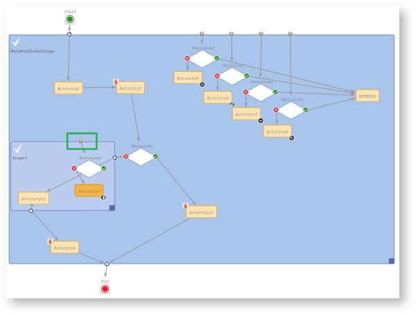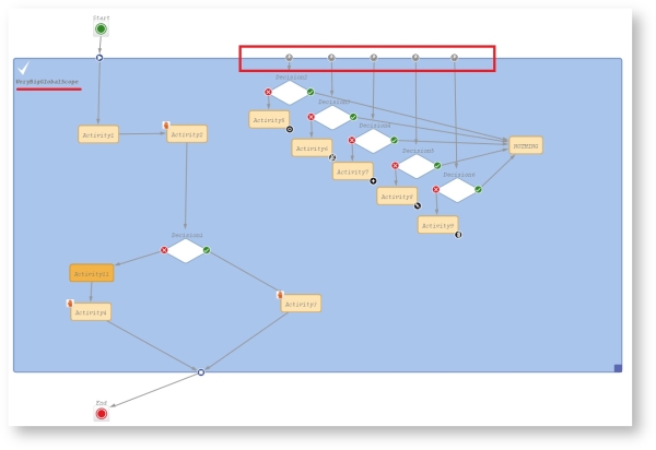 In this example, the position of Activity11 is optimized. It triggered many decision calls and all of them went to NOTHING. Executing Activity11 outside of the global scope keeps a good quality of workflow performance!