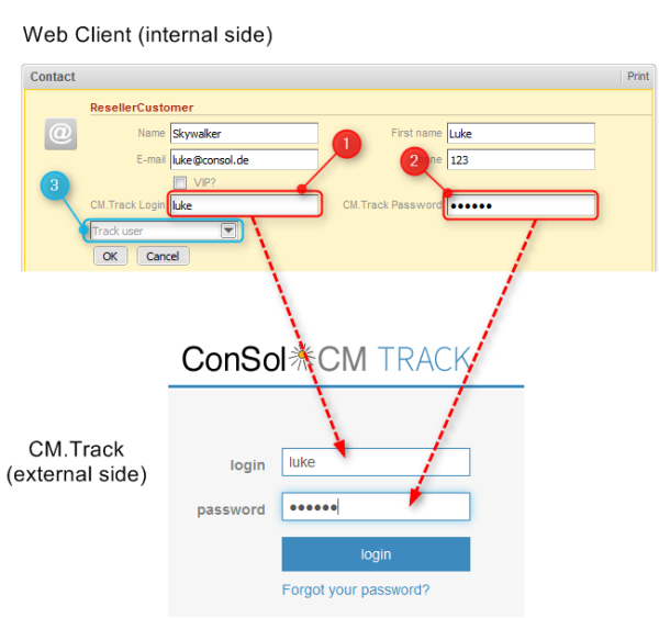 Once you have created the CM.Track account, you need to communicate the CM.Track login to your customer, so he can use it to access CM.Track.