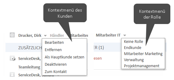 Abbildung 59: Kontextmenüs der Zusatzkunden