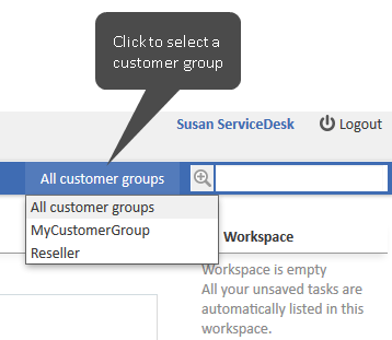 The Workspace allows you to access temporarily saved data. If you create or edit ticket, customer, or resource data, and switch to another screen without saving, your latest draft is saved in the workspace. You can retrieve it later to continue working.