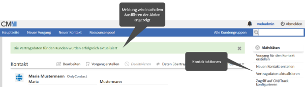 - Kontaktaktion: unit, contact, company, formFields (wenn ein Aktionsformular verwendet wird), controlForm (wenn ein Aktionsformular verwendet wird)