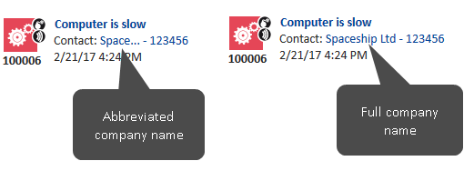 The following example shows the template for a company and how the abbreviated company name is displayed in the case list.