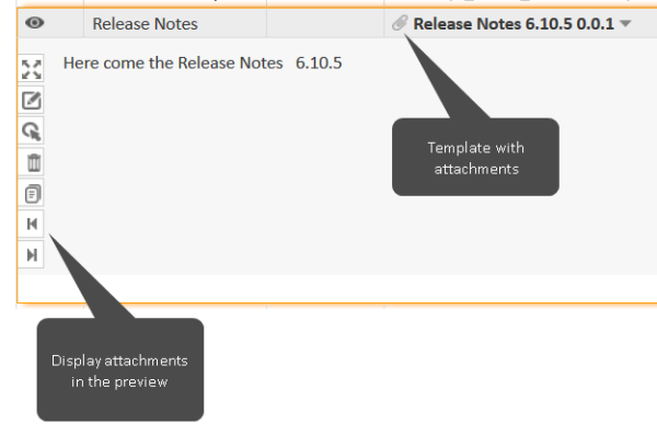 You can click the arrow icons in the preview of a template to display the attachments in the preview window.