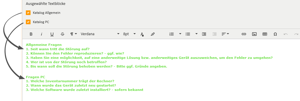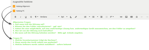 Abbildung 10: Vorlage mit Textblöcken (Benutzerperspektive)