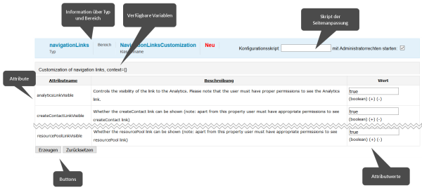 Anstatt die Attributwerte in der Seitenanpassung einzugeben, können Sie sie über ein Skript setzen. Dies ermöglicht die Verwendung von zusätzlicher Logik, beispielsweise um die Seitenanzeige an die Benutzerrollen oder an bestimmte Merkmale des aktuell angezeigten Objekts anzupassen.