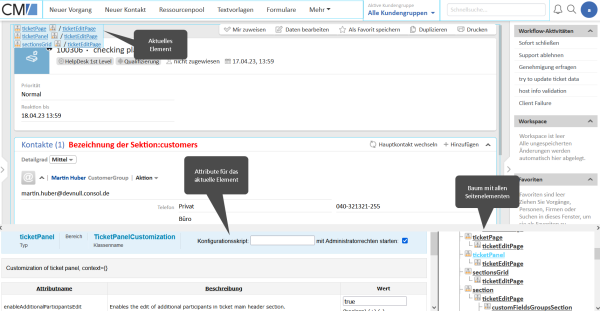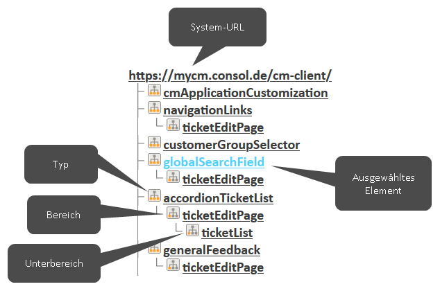 ConSol CM-Funktion, die die Modifizierung der Darstellung und des Verhaltens von bestimmten Elementen des Web Clients ermöglicht. |